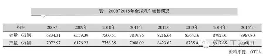 2015年,在全球經(jīng)濟(jì)不景氣、經(jīng)濟(jì)增長放緩的背景下,世界汽車產(chǎn)銷總量依然增加。根據(jù)世界汽車組織 (OICA) 的統(tǒng)計(jì),全年全球累計(jì)生產(chǎn)各類汽車 9068.31 萬輛,同比增長 1 個(gè)百分點(diǎn)。